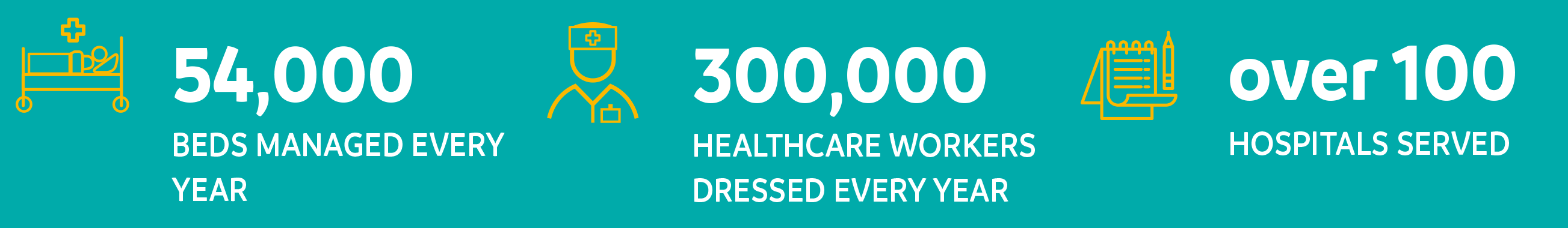 We wash and hire out flat linen and personnel uniforms for healthcare facilities.